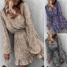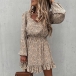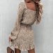 Sweet Style Long Sleeve Square Collar Ruffle Hem Printed Dress