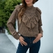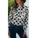 Sweet Style Long Sleeve Stand Collar Ruffle Hem Printed Shirt Blouse