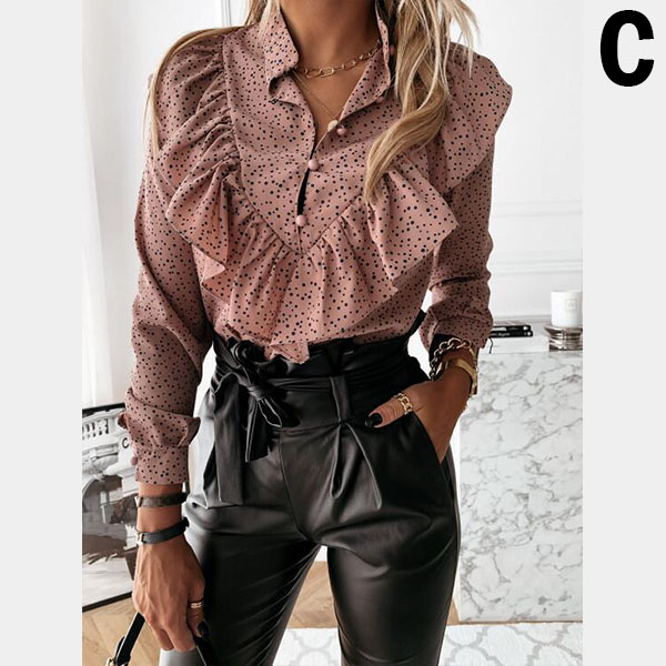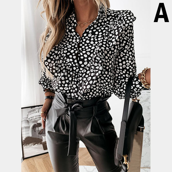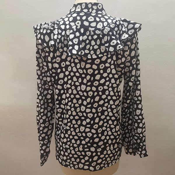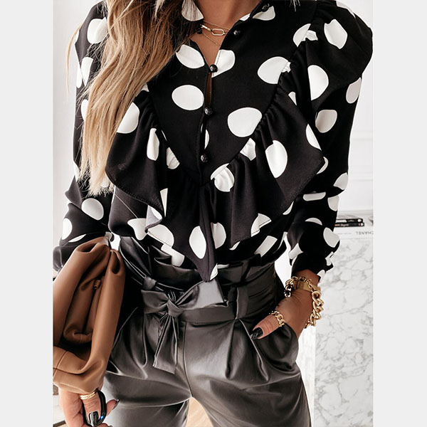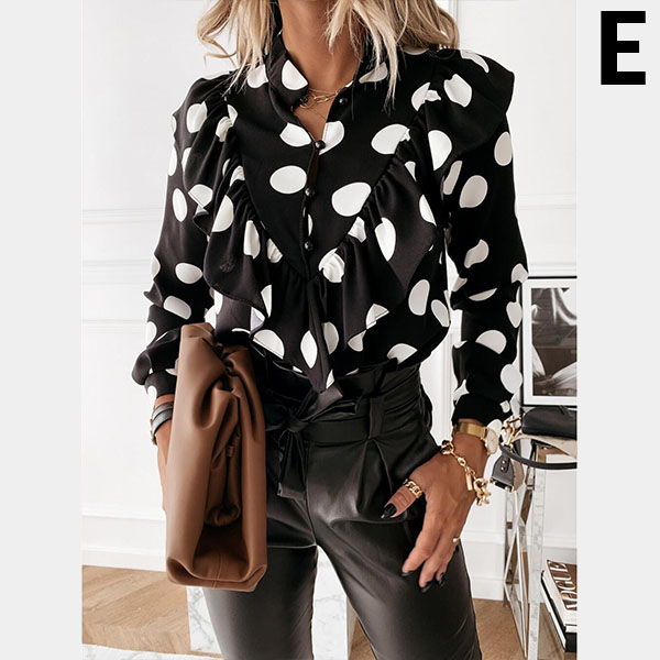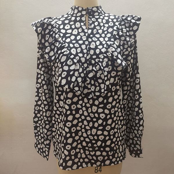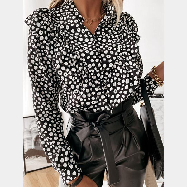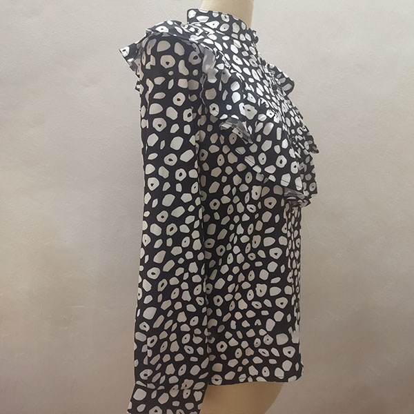 For a sweet and charming working look,you can just have a try this blouse. It features chic and eye-catching printed details,this piece can ensure you a comfortable day with its soft and breathable fabric. Moreover,the stand collar and ruffle design will make this piece look more attractive Perfect fit for matching with different style bottoms.