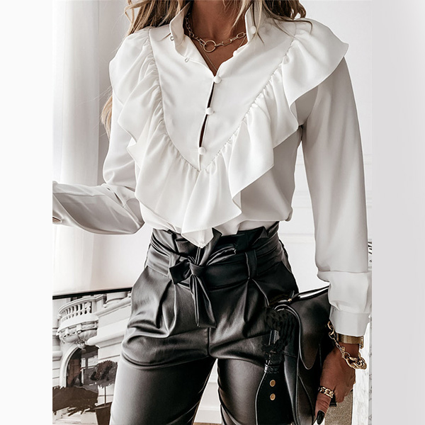 For every girl's wardrobe,a stylish and all-match blouse is an essential. So how about this piece? The v-neck and ruffle design can offer you a more charming look,while its soft and breathable fabric can ensure you a comfortable day. You can match it with your shorts,skirts or jeans to have a wonderful day!