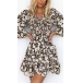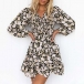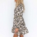 Sweet Style Long Sleeve V-neck Ruffle Hem Printed Dress