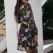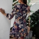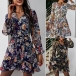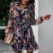 Sweet Style Long Sleeve V-neck Ruffle Hem Printed Dress