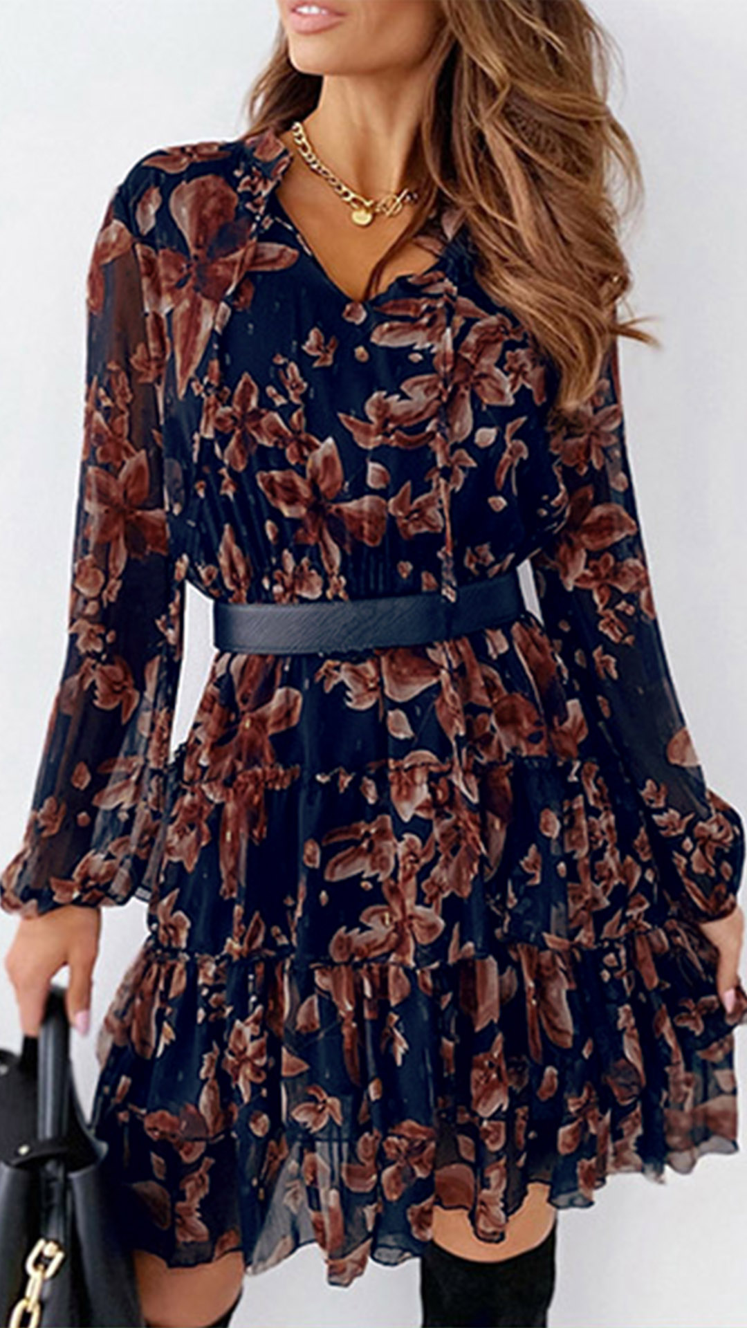 When you have a dating with your besties or boyfriend,you can trust in this dress to gain more eyes. Features chic and eye-catching printed details,finished with long sleeve,v-neck and ruffle hem design,this dress can make you look effortless charming and beautiful. Add this piece to your wardrobe and it won't let you disappointed!