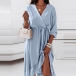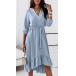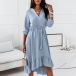 Sweet Style Long Sleeve V-neck Ruffle Hem Solid Color Dress