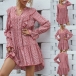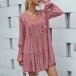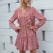 Sweet Style Long Sleeve V-neck Ruffle Printed Dress