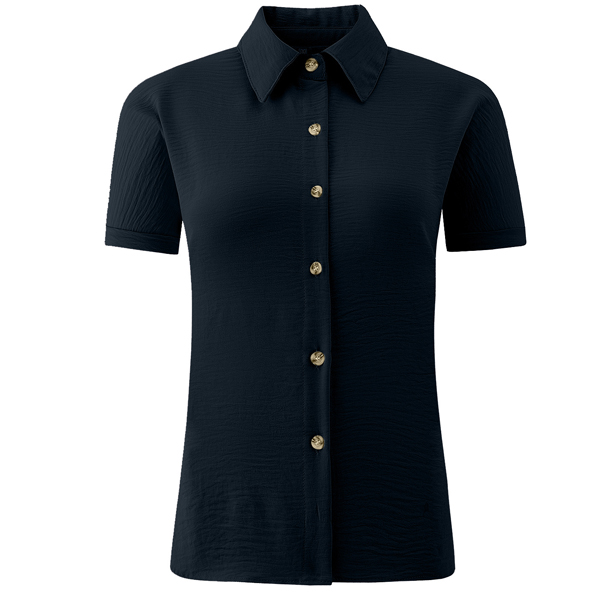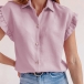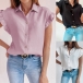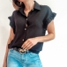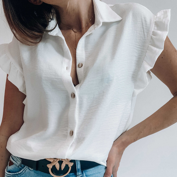 Don't like too formal shirts? Then you can make your eyes focused on this piece. It comes with a solid color,the ruffle design at the cuff part can lend you a dash of sweet and stylish vibes. Finished with short sleeve,POLO collar and single-breasted design,this piece can offer you different fashion styles by teaming with different style bottoms.