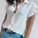Sweet Style Lotus Sleeve POLO Collar Single-breasted Solid Color Shirt