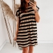 As for your casual days,this dress can be your wise choice. The stripe element design makes this piece look so stylish and attractive,and the lotus sleeve design will lend you a dash of sweet vibes. Finished with round neck and a loose silhouette,this dress definitely knows how to give you a cozy yet stylish daily style.