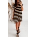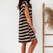 Sweet Style Lotus Sleeve Round Neck Loose Striped Printed Dress