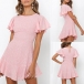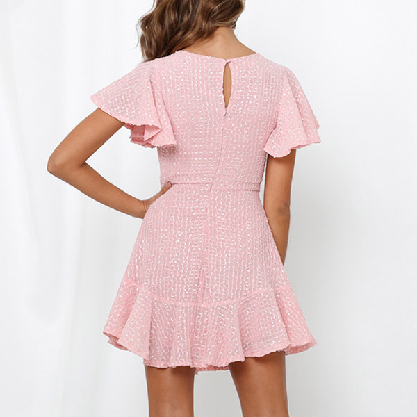 Wanna a sweet and charming dating look? Then let this dress help you. It comes with a sweet pink tone,finished with lotus sleeve and ruffle hem design,which can easily enhance your feminine appeal. Dress it up with your favourite heels and handbag,you can look beautiful enough!