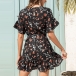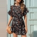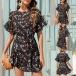 Sweet Style Lotus Sleeve Round Neck Ruffle Hem Printed Summer Dress