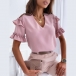 Sweet Style Lotus Sleeve V-neck Blouse Top