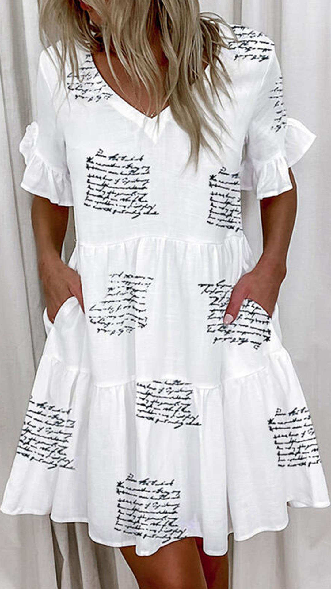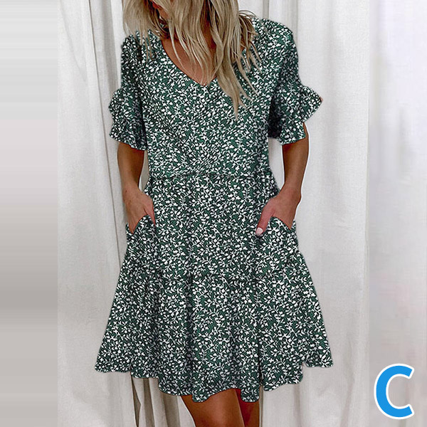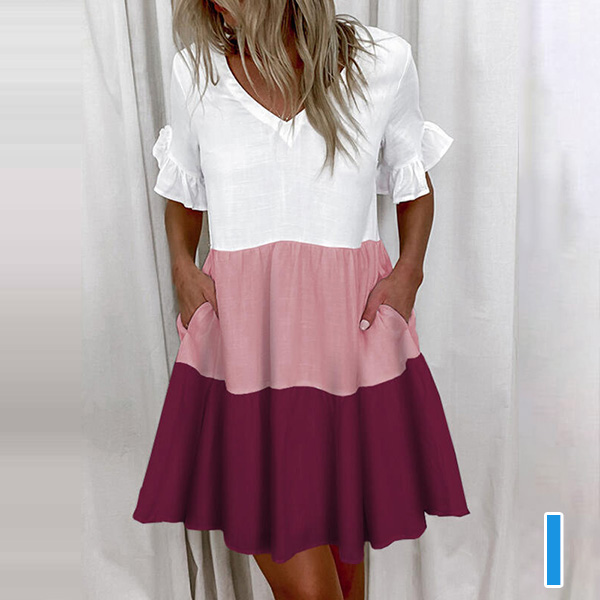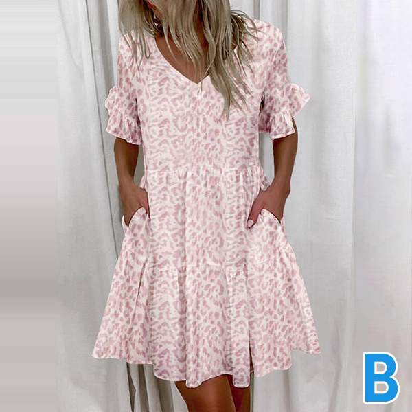 Sweet Style Lotus Sleeve V-neck Loose Dress