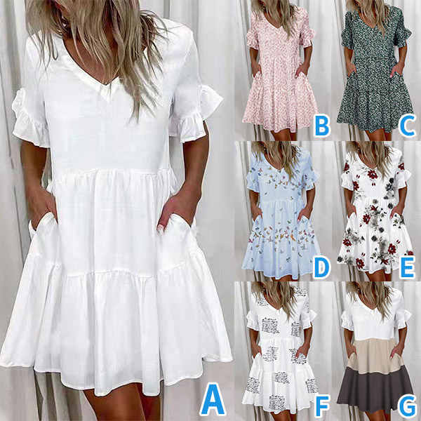 When the summer days come,this short sleeve dress can be your wise choice. Crafted from soft and breathable fabric,with lotus sleeve and a loose silhouette,this dress not only can give you a comfortable day,but also can exude your sweet yet stylish vibes. Different colors for your optional.