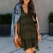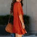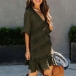 Sweet Style Lotus Sleeve V-neck Solid Color Ruffle Dress