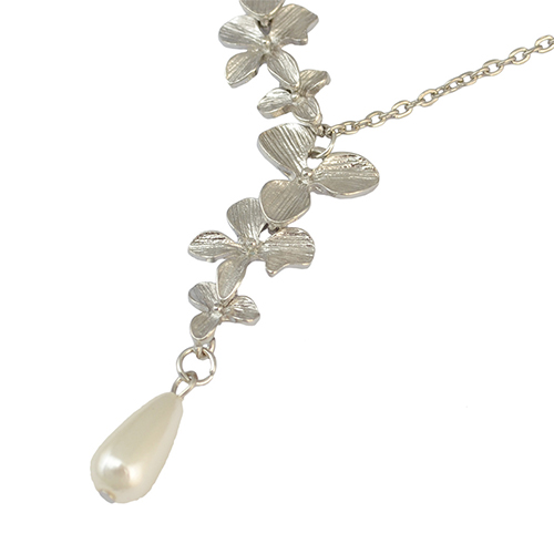 Sweet Style Pearl Alloy Flower Pendant Necklace