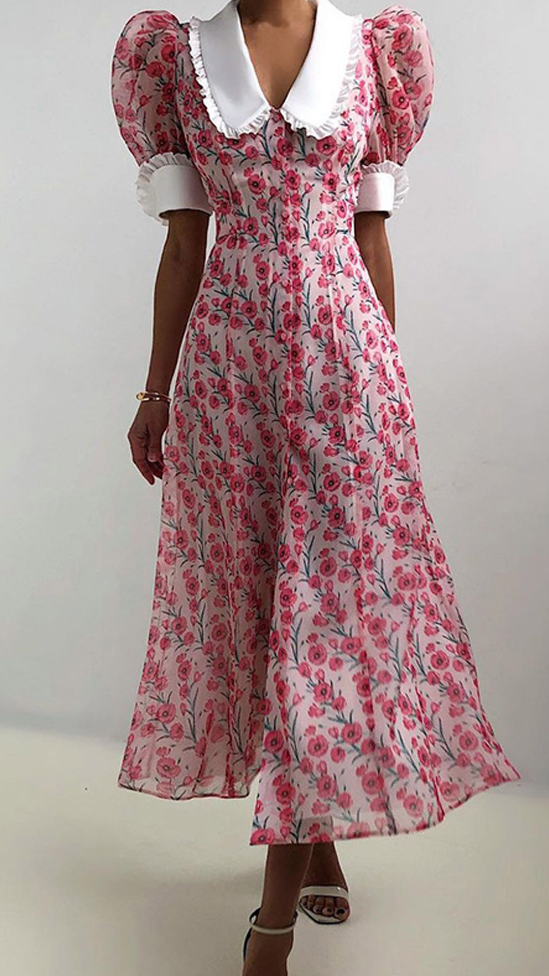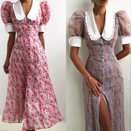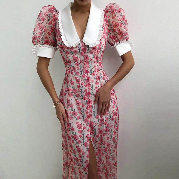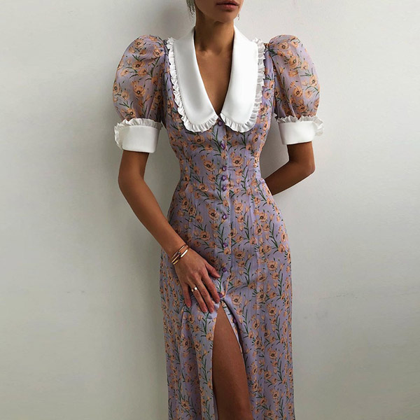 When it comes to a sweet yet charming daily style,you can just slip into this dress. It features vibrant floral print details,which will make this piece look more eye-catching. Moreover,the puff sleeve,doll collar and slit hem design will lend you a dash of flirty yet feminine appeal. You can look effortless charming and beautiful in this dress.