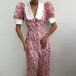 Sweet Style Puff Sleeve Doll Collar Slit Hem High Waist Printed Dress