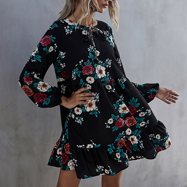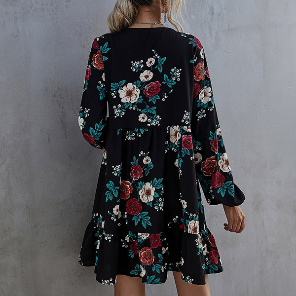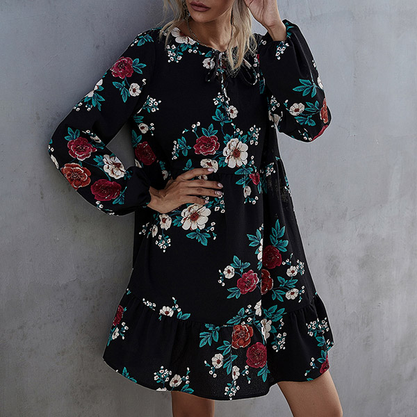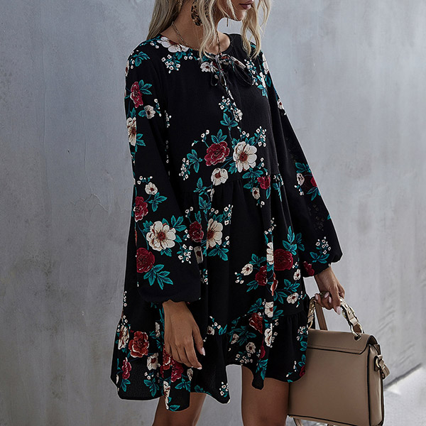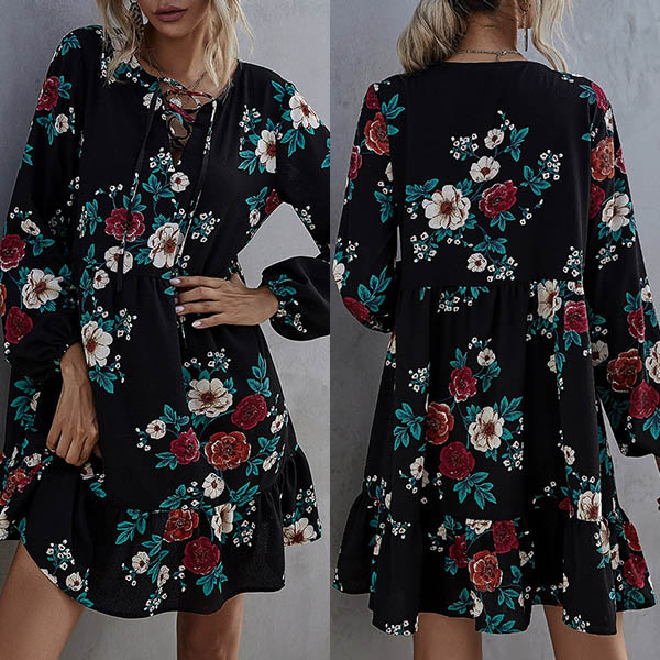 Hey,girls,you can just step out to greet your wonderful day with this dress. Features chic and eye-catching printed details,which can help you catch more eyes. The lantern sleeve and ruffle hem design will further enhance its charm. No matter for your night dating and daytime out,you can trust in this dress to look beautiful!
