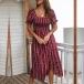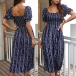 Make your summer wardrobe more complete by adding this printed dress. Thanks to the puff sleeve,square collar and slit hem design,this dress can exude your charming feminine appeal,while the high waist and maxi length design can portray your slender figure. This is a dress which can be fit for in different summer occasions. So why not take interest in it?