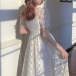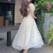 Wanna be a sweet princess? Then you can turn to this lace dress for help. The v-neck and puff sleeve design make this piece full of feminine sense,while the high waist design can better showcase your slender figure. No matter when and where you are,you can easily be the focus once you are in this dress.