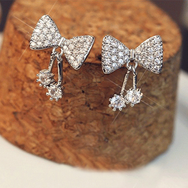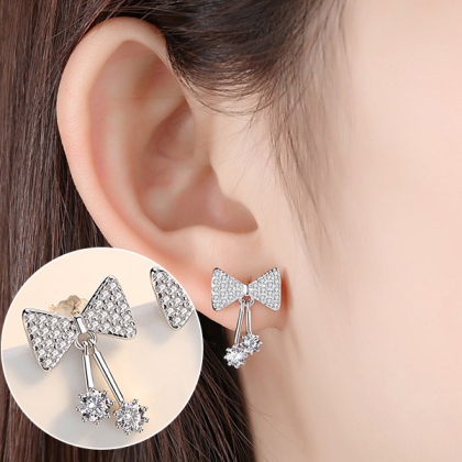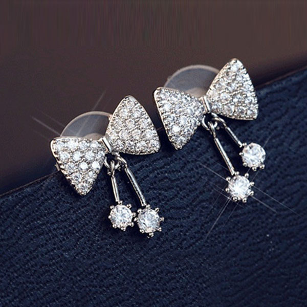 Sweet Style Rhinestone Inlaid Bow-knot Shaped Stud Earrings