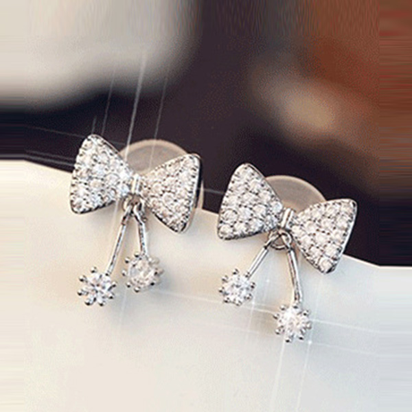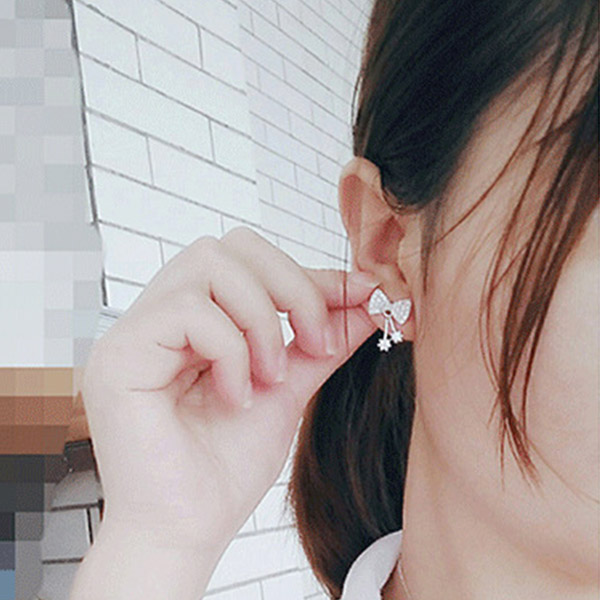 Add a dash of sweet and charming vibes to your overlook with this pair of stud earrings. Bow-knot shaped design,inlaid with rhinestone details,shinning and attractive. So why not embellish your ears with these pieces?