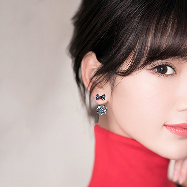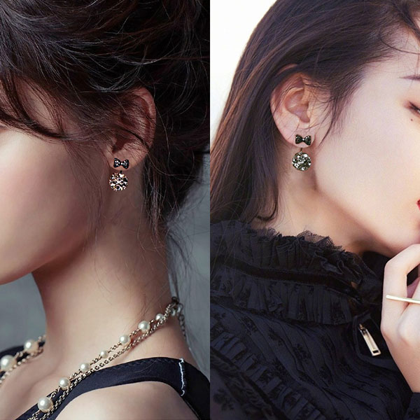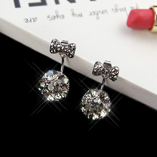 Add a dash of sweet and charming vibes to your overall look with this pair of stud earrings. Bow-knot shaped design,inlaid with rhinestone details,shinning and attractive. Finish a beautiful daily look with these pieces.
