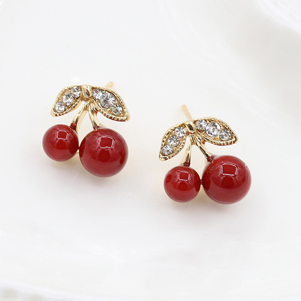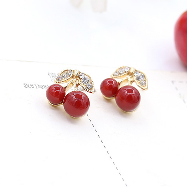 A dash of sweet and charming vibes can be injected to your daily look when you wear this pair of stud earrings. Cherry shaped design,inlaid with rhinestone details,sweet yet shinning. Your entire charm can have a boost when you wear them.