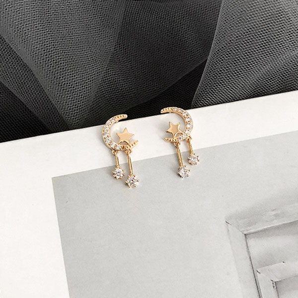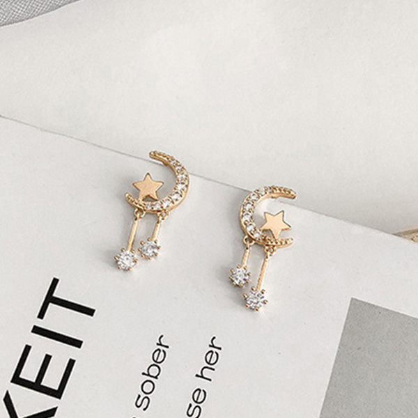 Finish a more charming and beautiful daily look with the help of this pair of stud earrings. Crescent shaped design,inlaid with rhinestone details,shinning and attractive. When you add them,your charm can have a boost!