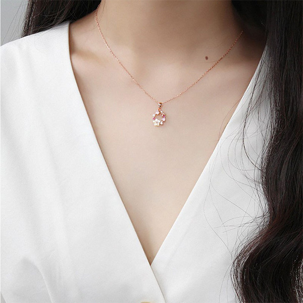 Sweet Style Rhinestone Inlaid Wreath Pendant Necklace