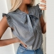 Sweet Style Ruffle Cuff Lace-up Bow-knot Collar Dots Printed Top Blouse