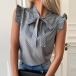 For a sweet and stylish working look in these summer days,you can just have a try this blouse. The dots printed details make it look more playful and stylish,while the ruffle cuff and lace-up bow-knot collar design will make this piece look more attractive. All-match design allows to be matched with different style bottoms.