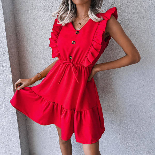 Enjoy your summer days with this sleeveless dress. It comes with a solid color,the ruffle cuff and v-neck design can lend you a dash of sweet yet feminine appeal. Meanwhile,its soft and breathable fabric can ensure you a comfortable day. Dress it up with your favourite heels for a beautiful look.