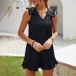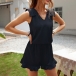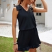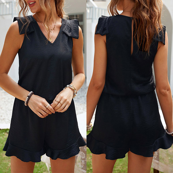 If you are tired of the dresses,t-shirts and pants,then this romper can be your another good choice. Comes with a classic yet flattering black tone,the ruffle cuff and v-neck design can help enhance your feminine appeal. Meanwhile,its soft and breathable fabric can ensure you a comfortable day. Like this style? Then invite this romper to your summer wardrobe!