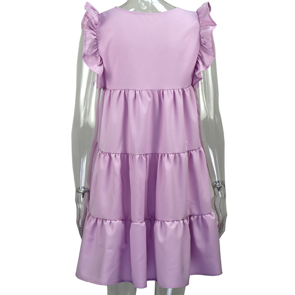 Sweet Style Ruffle Cuffl Round Neck Solid Color Loose Dress