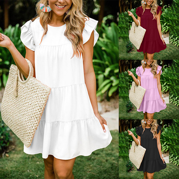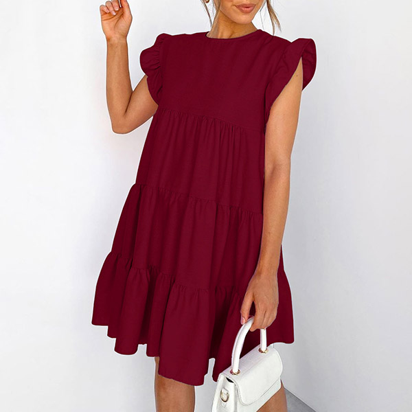 Thanks to the super soft,breathable fabric and loose silhouette,you can have an utmost comfort in this dress. It comes with a solid color,the ruffle cuff design can lend you a dash of sweet and stylish vibes. When the summer season hits,this dress is worth to be your wardrobe staple.