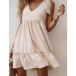 Sweet Style Ruffle Hem Knotted Shoulder Sleeveless V-neck Solid Color Dress