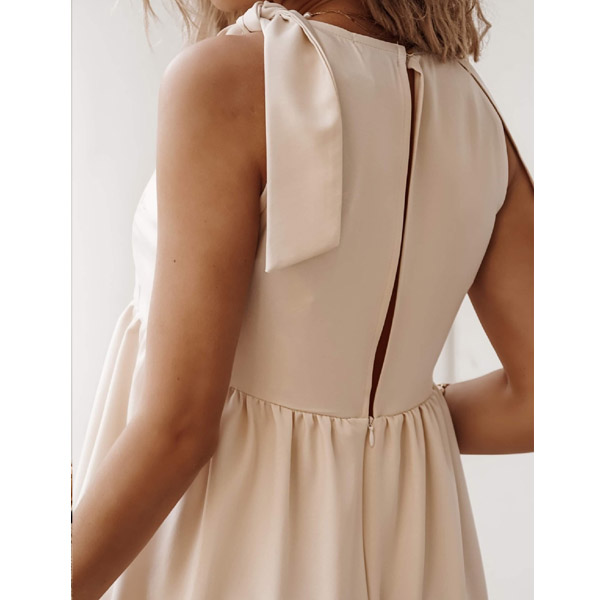 Crafted in a solid color,this sleeveless dress is perfect fit for your hot summer days. The ruffle hem and knotted design at the shoulder part will make this piece look more attractive. Designed with slit and concealed zipper at back side. Like this dress? Then invite it to your summer wardrobe!