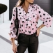 Sweet Style Ruffle V-neck Long Sleeve Printed Blouse