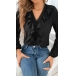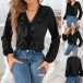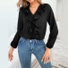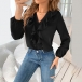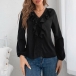 Sweet Style Ruffle V-neck Long Sleeve Solid Color Blouse