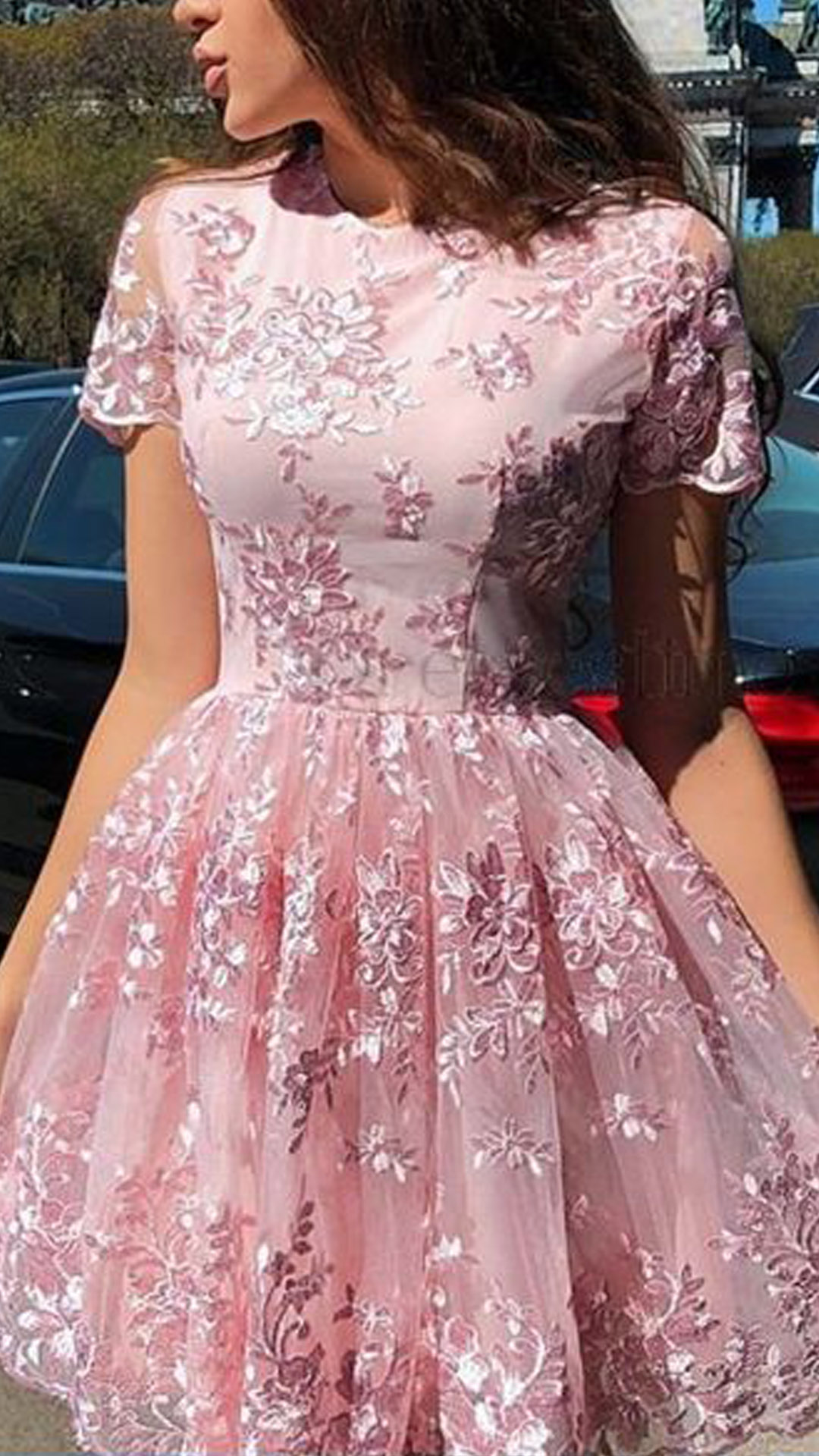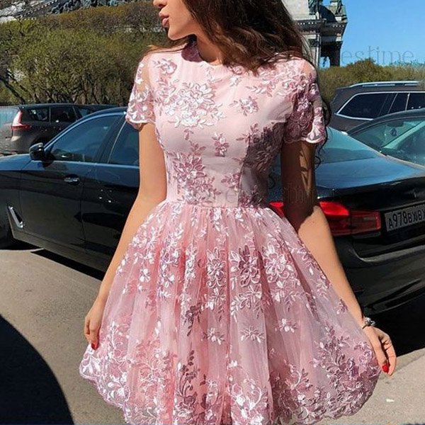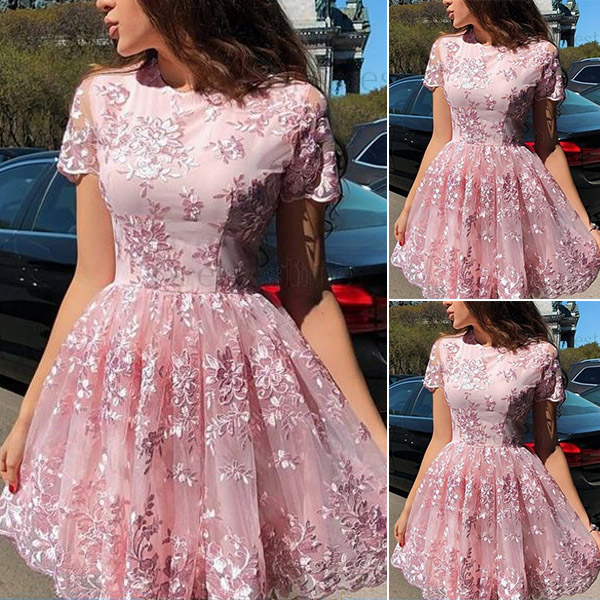 Every girl has dreamt of being a fairy tale princess, so let this gorgeous dress grant your wish. It comes with a sweet pink tone,designed with lace details,which can better exude your charming feminine appeal. Finished with short sleeve,round neck and high waist design,this dress can showcase your figure while it maintains your style and charm.