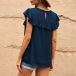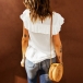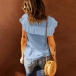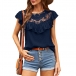 For a sassy yet sweet daily look,you can just have a look at this wonderful t-shirt. Solid color style,the sheer lace details and ruffle design make it look so sweet and flirty. Meanwhile,its soft,breathable fabric and loose silhouette design can offer you an all-day comfort. Perfect fit for matching with different style bottoms.