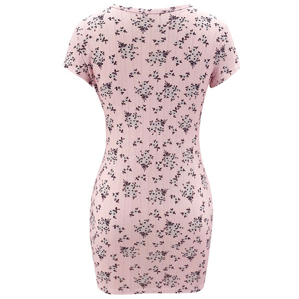 Thanks to the sweet pink tone and chic printed details,this dress can lend you a dash of fresh and sweet vibes. Finished with short sleeve,round neck and a fit silhouette,this dress also can flaunt off your slender figure. Save this piece for your daytime out and night dating.