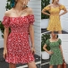 Sweet Style Short Sleeve Square Collar Printed Dress