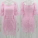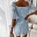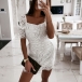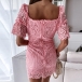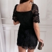 Sweet Style Short Sleeve Square Collar Solid Color Lace Dress