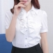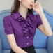 For your workdays,this shirt is a wise choice. It comes with a solid color,finished with short sleeve,stand collar and ruffle design,this shirt that combines of sweet and stylish vibes knows how to give you an elegant,delicate yet confident working look. All-match design can offer you many matching opportunities.