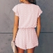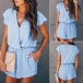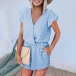Sweet Style Short Sleeve V-neck High Waist Embroidery Dots Romper