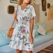 Sweet Style Short Sleeve V-neck High Waist Printed Dress