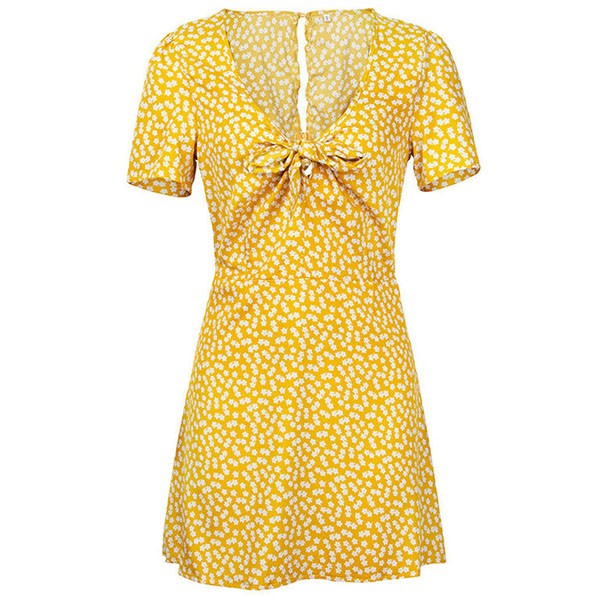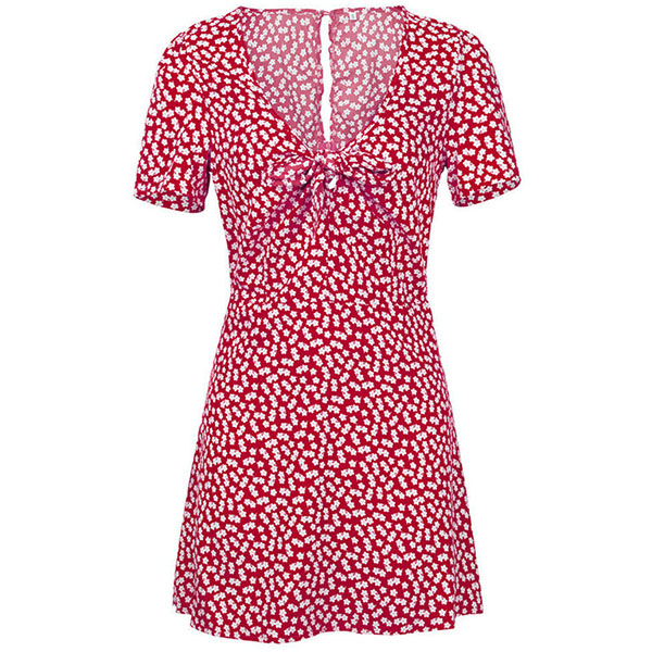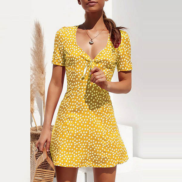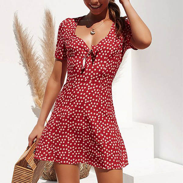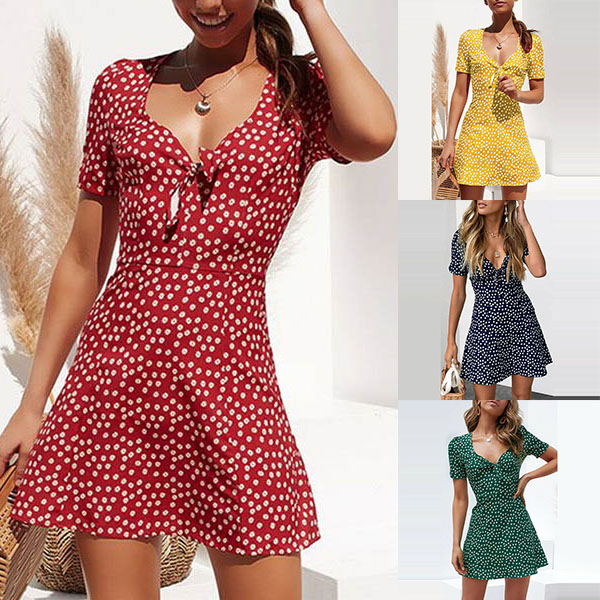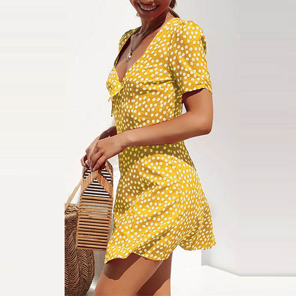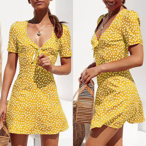 A must have staple piece in any girl's wardrobe, this dress is your perfect partner for your weekend out and night dating. Features vibrant floral print details,with short sleeve and v-neck design,this dress can make you look effortlessly charming and beautiful. Dress it up with your sexy heels to enjoy your wonderful days.